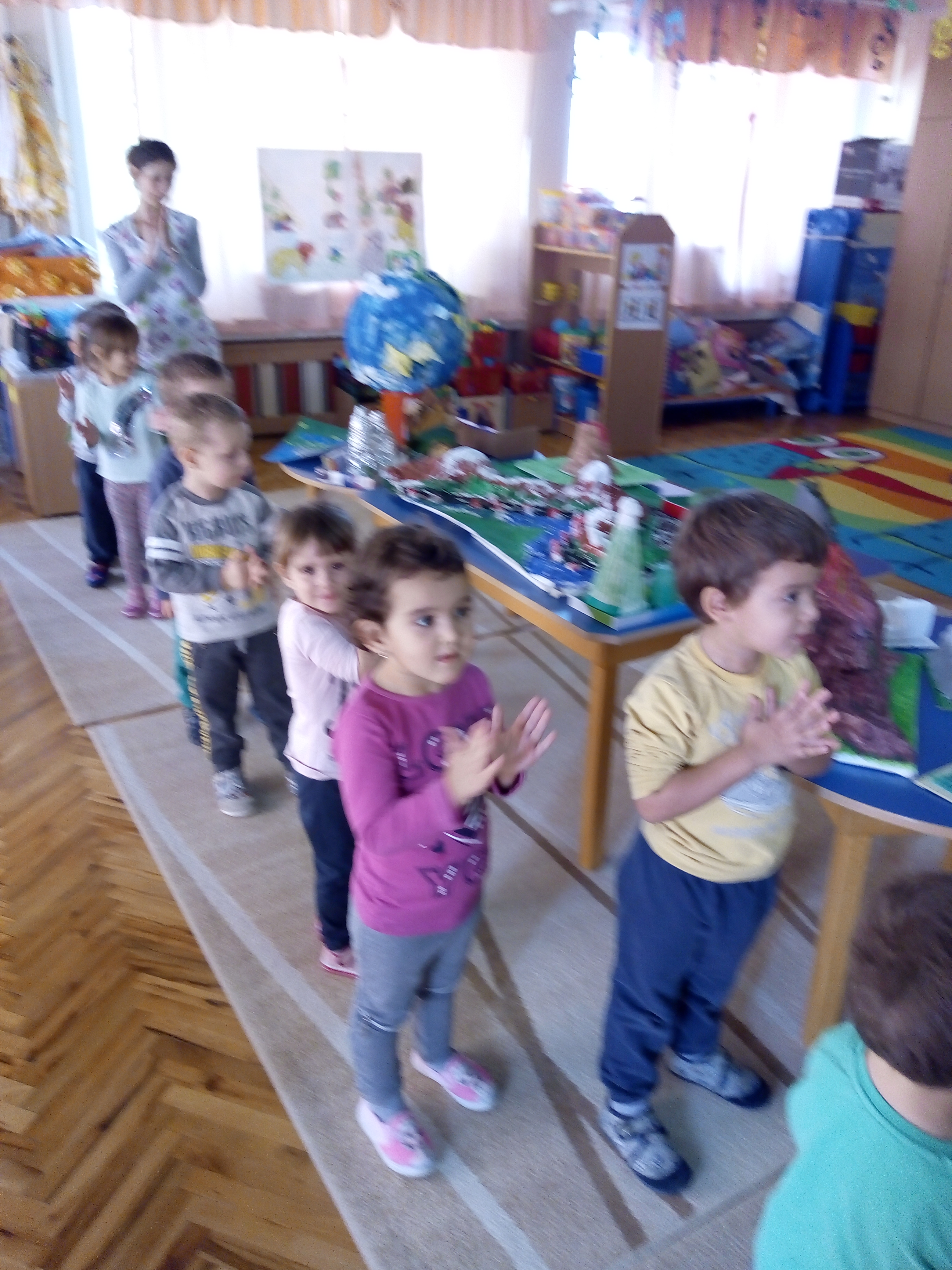 Данас су деца из старије групе Лептирићи, у својој радној соби, организова изложбу радова на тему: Планета Земља,