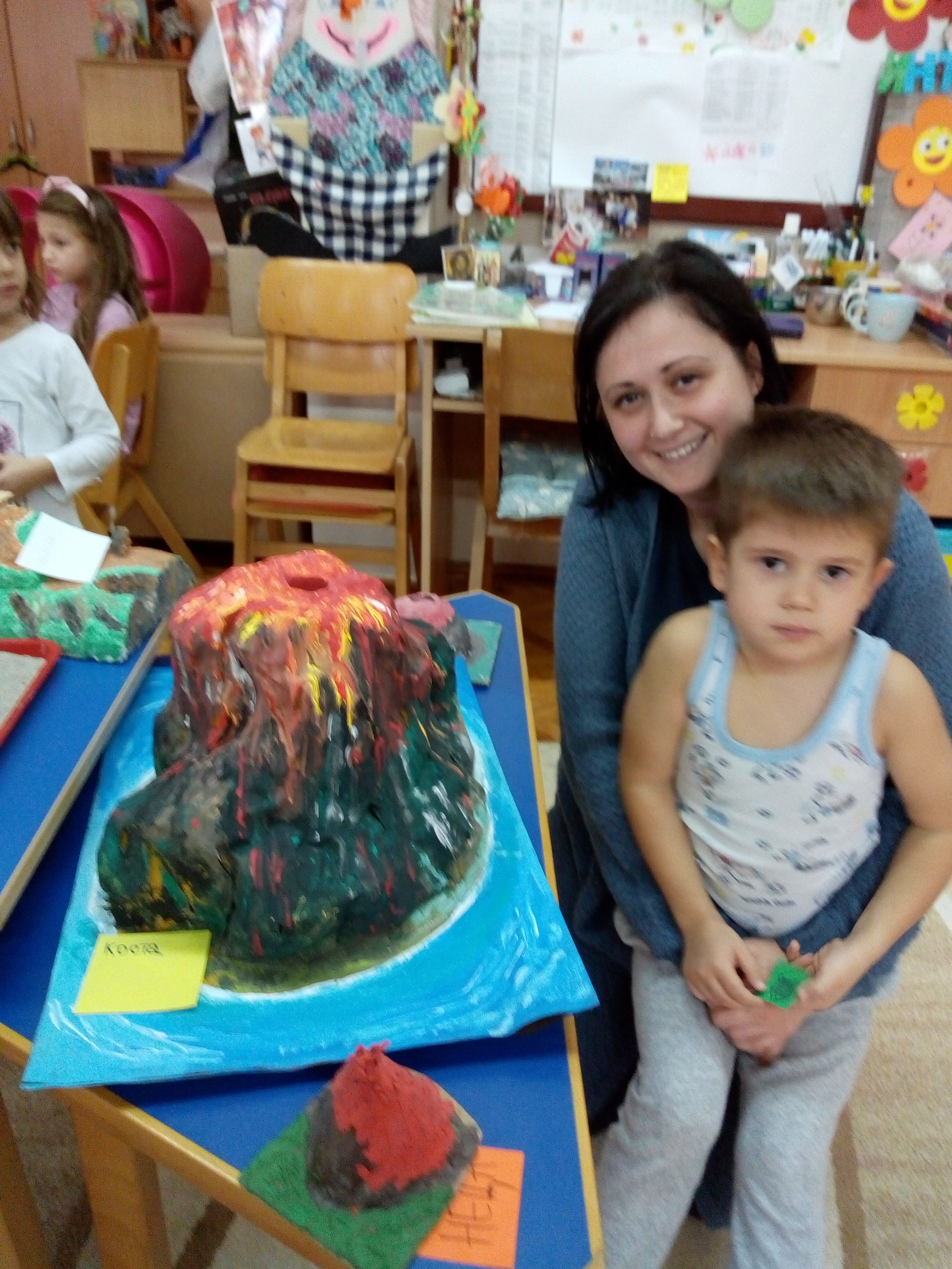 Изложене радове: планине, брда, вулкани, потоке, брежуљке су израдили лептирићи уз помоћ својих родитеља.