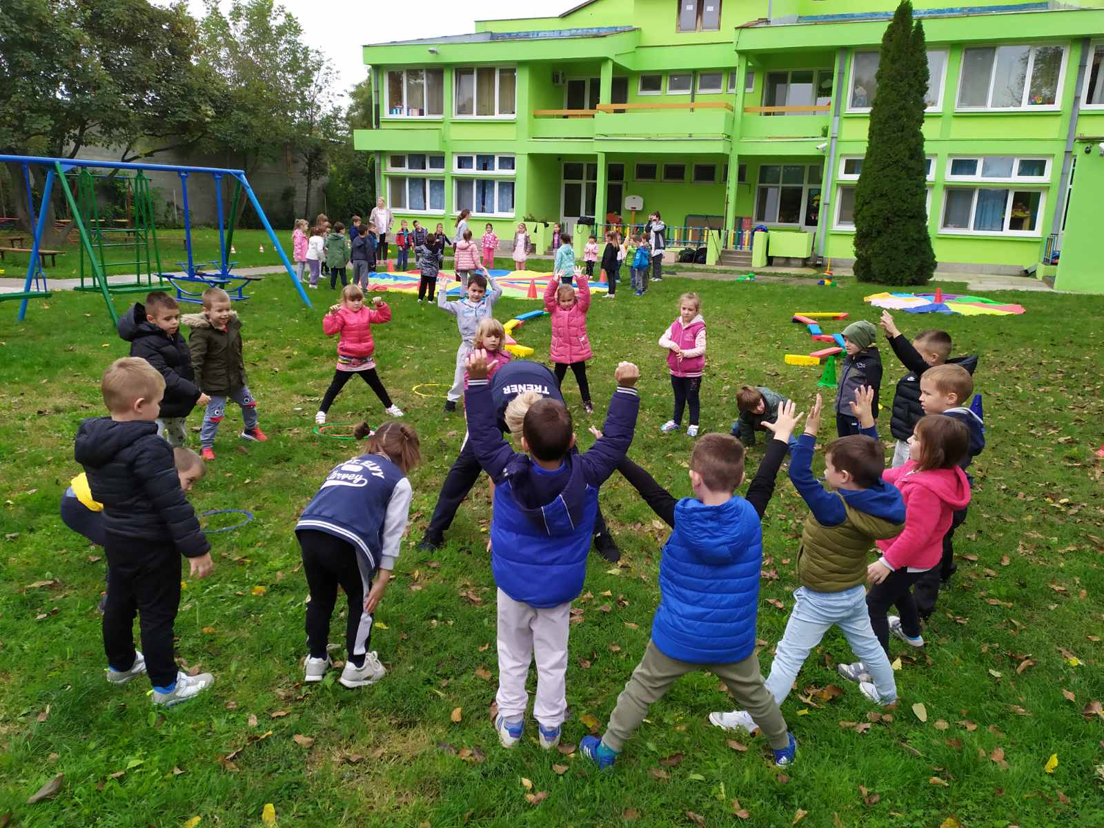 Док су млађе групе испољавале своју креативност, старија деца су сизграђивала здраве животне навике на Фестивалу спорта, који је био организован у Дворишту нашег Полетарца. Како би деца започела Дечју недељу здравим навикама, тренери, реализатори Бесплатне школице спорта, поставили су полигоне за децу и преуредили наше двориште у праве олимпијске полигоне за вежбу спортиста.