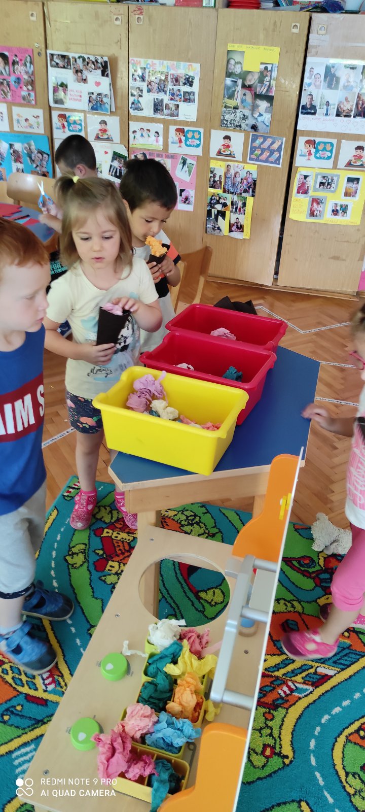 Почели су истраживењем главних састојака за прављење сладоледа, а то је воће, након воћа време је дошло за креирање изгледа сладоледа, боје, мућкање главних састојака, укуса…. уређење просторних целина у соби, а паузе сладоледа је најбољи и највеселији начин за забавно истраживање самосталним радом као и примену већ наученог у дечјој пракси.