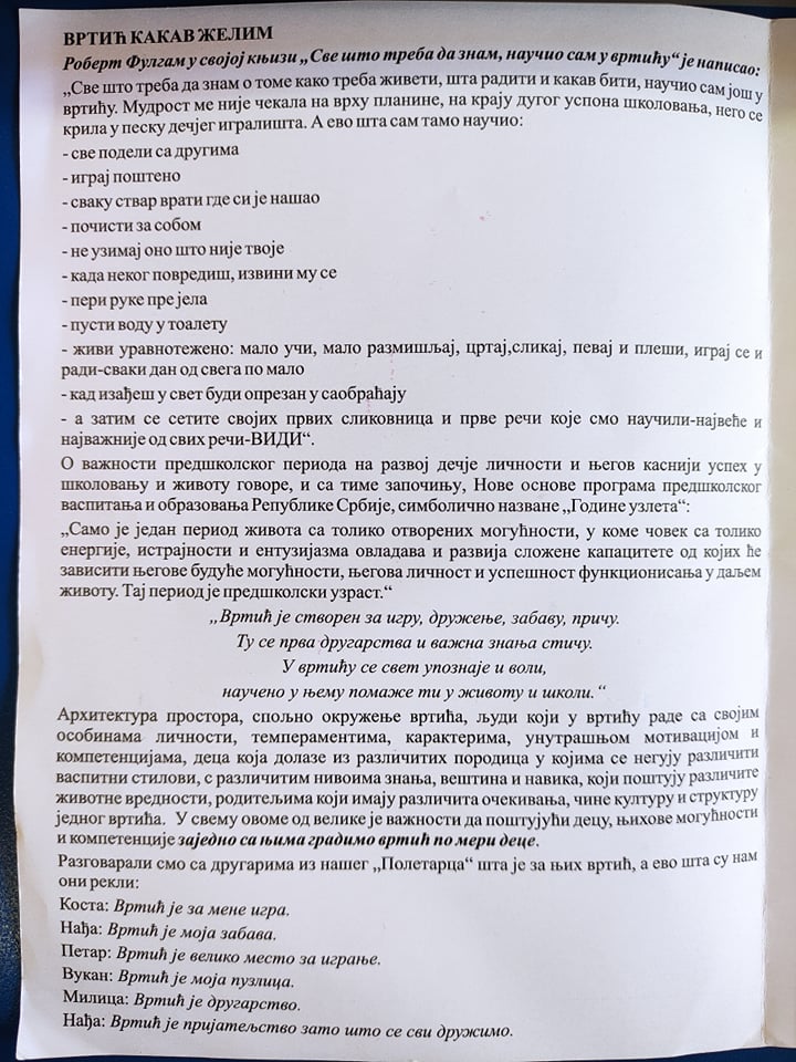 Желели би смо да знамо шта кажу деца из Вашег вртића, Какав вртић жели?
